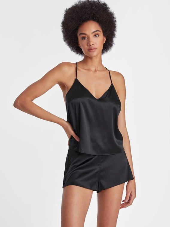 AUBADE erweitert die Nightwear-Linie und präsentiert mit der “Silk Desire” Serie eine anmutige, elegante und feminine Nachtwäsche-Kollektion aus edler Stretch-Seide. Die kurze Hose überzeugt mit einem weit geschnittenen Bein, das die Figur umspielt. Grafische Guipure-Bänder mit Lochstickerei an den Seiten verleiht der Seiden-Shorts einen sinnlichen Look.