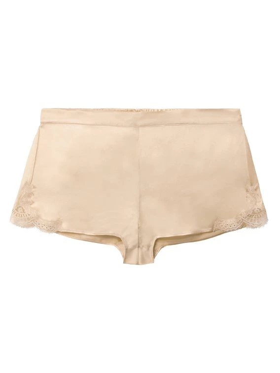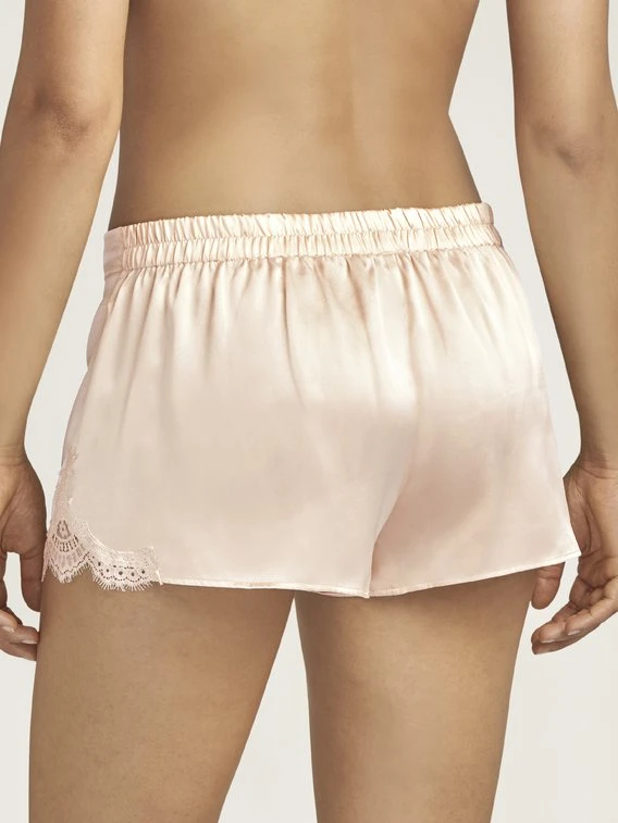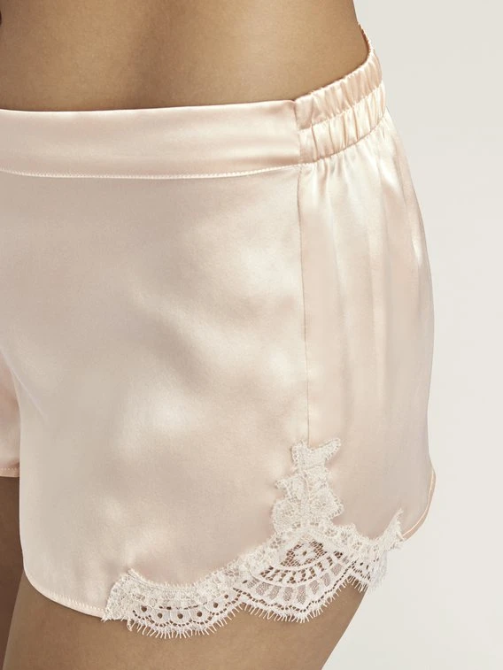 Die edle Nightwear-Linie „Toi mon Amour“ von AUBADE verwöhnt die Haut mit Zartheit und Sinnlichkeit. Ein dezenter Mix aus Seide und Spitze sorgt für einen verführerischen Transparenzeffekt. Die Shorts aus feinster Seide präsentiert sich mit Spitzeneinsatz an den Seiten.