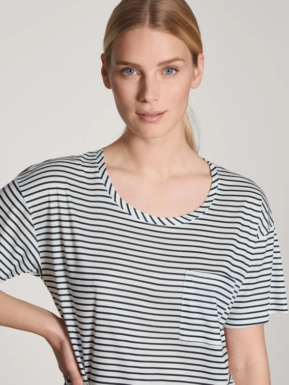 Modisch und Nachhaltig präsentiert CALIDA das Kurzarm-Shirt aus der Serie 100% NATURE. Das Oberteil ist zu 100% kompostierbar und setzt damit ein klares Statement. Das Ausgangsmaterial für diesen Artikel ist Holz, welches ressourcenschonend in einem geschlossenen Kreislauf verarbeitet wird. Zur Entsorgung kann das Shirt zurück zu CALIDA gebracht oder auf den Gartenkompost gelegt werden.