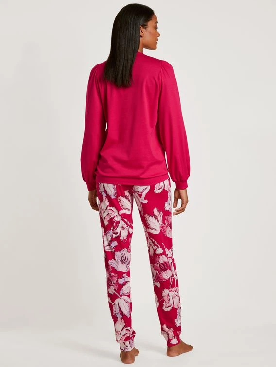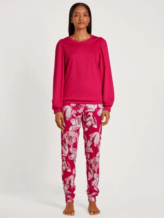 Frischen Wind im Wäscheschrank bringt der Bündchen-Pyjama aus der BLOOMING NIGHTS Kollektion von CALIDA durch pulsierende Frühlingsfarben mit sich. Gefertigt aus reiner Supima®, Baumwolle mit swiss+cotton-Gütesiegel sorgt er für tollen Tragekomfort und erholsame Nächte. Kombiniert wird die lange Pants im opulenten Papageientulpenprint zum unifarbenen Longsleeve. Weiche Bündchen an den Abschlüssen verhindern lästiges Verrutschen und halten in lauen Sommernächten kuschelig warm.