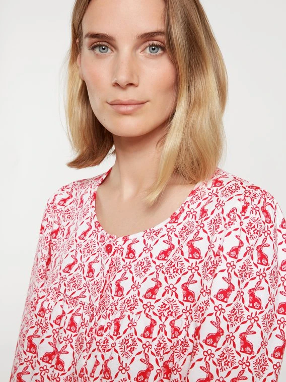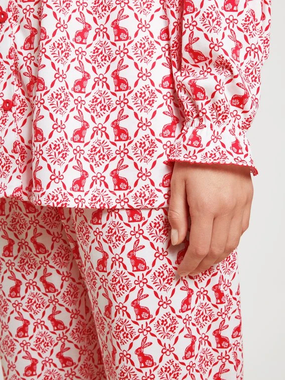 Der Pyjama aus der EASTER NIGHTS Serie von CALIDA ist als Ostergeschenk oder als verspielter Look zum Osterbrunch ein wahrer Hingucker. Gefertigt aus reiner Supima®, Baumwolle in Interlock-Bindung, schmiegt sich der Schlafanzug weich an die weibliche Silhouette und begeistert durch den lässigen Schnitt, mit tollem Tragegefühl.