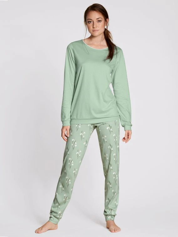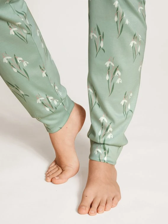 Wer behauptet, Bündchen-Pyjamas wären von Natur aus sportlich, kennt den ENDLESS DREAMS Pyjama von CALIDA noch nicht. Zarte Schneeglöckchen auf ebenso zartem Grund verleihen dem Duo aus entspannter Hose und unkompliziertem Langarmoberteil pure Weiblichkeit. Erwachsen, zeitlos und überaus langlebig begleitet dieses verträumte Sleepwear-Essential zahllose erholsame Nächte.