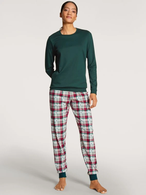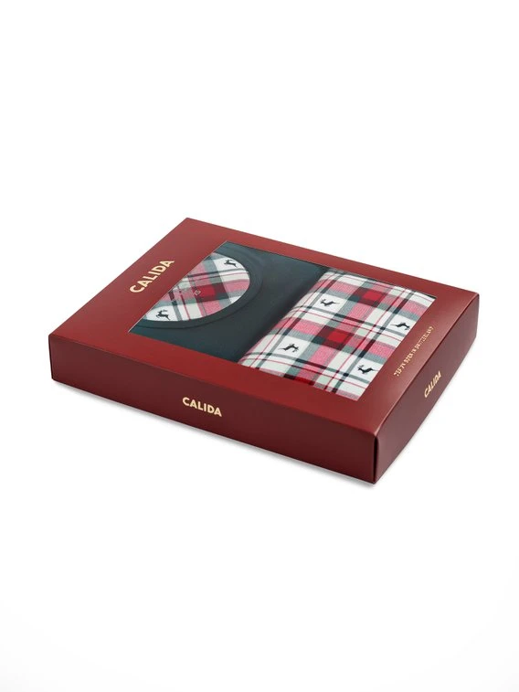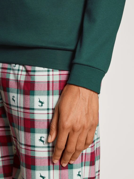 O, du fröhliche und kuschelige Weihnachtszeit! Wenn alle Geschenke ausgepackt und sämtliche Festtagsmenüs verputzt sind, geht es im FAMILY & FRIENDS Bündchen-Pyjama von CALIDA auf die Couch – oder direkt ins Bett. Dort umfängt er uns mit wohlig warmer Baumwolle, einem komfortablen Sitz und der unkomplizierten Leichtigkeit schöner gemeinsamer Stunden.
