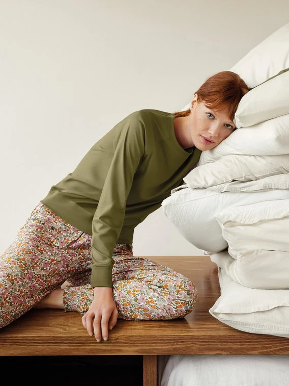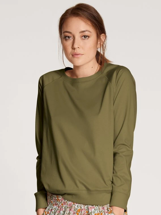 Sportliches Sweatshirt aus der CALIDA-Serie FAVOURITES BLOSSOM aus 100% Supima®-Baumwolle. Dank der lockeren Schnittform und der modischen Farbe lässt sich das Shirt perfekt zu einer Vielzahl an Unterteilen kombinieren.