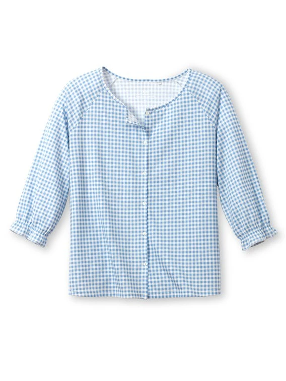 Heute lieber Bluse oder komfortables Shirt? Wie wär’s einfach mit beidem? Das FAVOURITES COTTAGE Shirt mit 3/4-Arm von CALIDA zitiert den romantischen Look klassischer Schäferinnen-Blusen. Raffdetails, Knopfleiste und leicht ausgestellter Schnitt bilden ein wunderbares Trio für feminine Looks. Dank flexibler Baumwoll-TENCEL™-Fasern bleibt das Oberteil jederzeit relaxt und doch immer in Hochform.