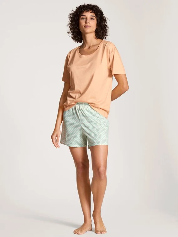 Der lässige Schnitt und hochwertige Baumwoll- TENCEL™, Modal Micro- Qualität sorgen bei der Shorts aus der FAVOURITES EXOTICA von CALIDA für den Wohlfühlfaktor. Kombiniert mit der sommerlichen Farbgebung wird die kurze Hose zum Lieblings-Begleiter in gemütlichen Stunden oder in der Nacht.