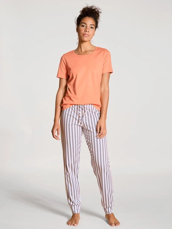 Klassische Lounge-Pants, im Längsstreifen-Look aus der Serie FAVOURITES FLOWERS von CALIDA. Kombiniert, mit den Shirts der Linie, entsteht das persönliches Lieblings-Outfit für gemütliche Stunden daheim.
