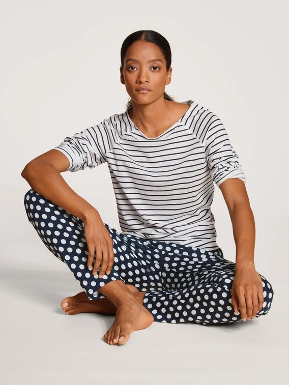 Wie wäre es mit ein wenig Instant-Urlaub? Das FAVOURITES MARINE Langarmshirt von CALIDA im maritimen Design macht sofort Lust auf Sonne, Strand und Meer. Selbst bei eher trüben Aussichten lässt es sich im Baumwoll-TENCEL™-Fasermix herrlich vom Sommer träumen. Kommen die passenden Mix&Match-Begleiter ins Spiel, steht der schicken Auszeit nichts mehr im Weg.