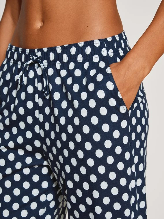 Für die Riviera, die Copacabana oder das Schwimmbad um die Ecke: Mit ihrem gut gelaunten Polka-Dot-Print kommt die FAVOURITES MARINE Hose von CALIDA überall gut an. Vor allem bei ihrer Trägerin! Fließende TENCEL™-Baumwoll-Fasern und ein lässig-komfortabler Tunnelzugbund sind optimale Begleiter für heiße Tage, laue Abende und viele Tragegelegenheiten.
