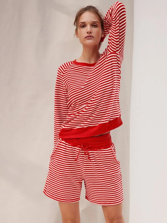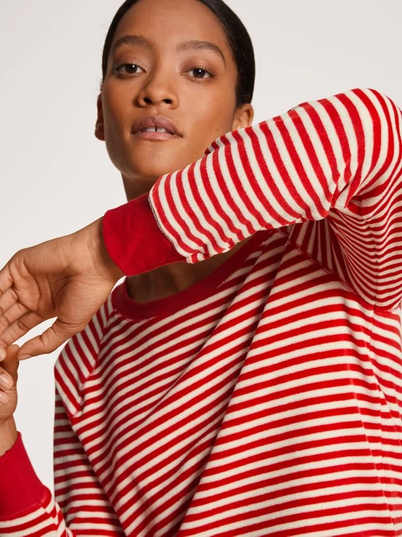 Im Fach Punkt- und Strichrechnung beweist die FAVOURITES MARINE Kollektion von CALIDA echte Streberqualitäten. Beim Langarm-Pullover mit frischem Streifen-Design ist das Ergebnis immer korrekt: Ein moderner Baumwollmix in Velours-Qualität bietet einen angenehmen Schutz an kühlen Sommerabenden, der lässige Sweater-Schnitt passt zu entspannten Freizeitauftritten.