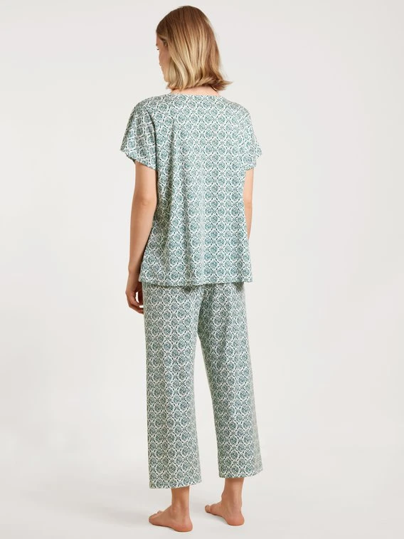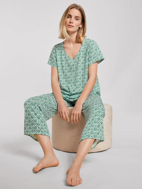 7/8-Pyjama aus der Serie GARDEN NIGHTS von CALIDA. 100% Supima® Baumwolle schmiegt sich kuschelig weich an die weibliche Silhouette, begeistert mit tollem Tragekomfort und garantiert einen erholsamen Schlaf. Die blumige, verspielte Musterung, luftige Stoffe sowie die saisonale Farbgebung sind der Inbegriff von romantischen Sommernächten und machen den Schlafanzug zu etwas Besonderem.