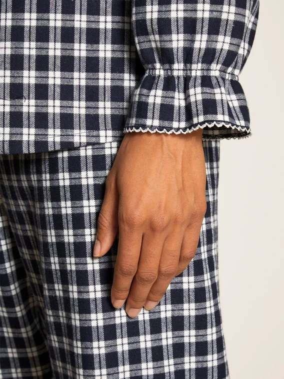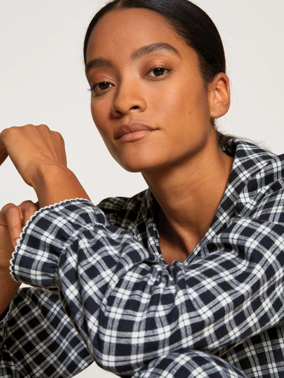 Darf es etwas Besonderes sein? Der HOLIDAY DREAMS Pyjama von CALIDA interpretiert die klassische Hemd-Hosen-Kombi auf aufregend feminine Weise. Das Oberteil mit Bubikragen und gerüschten Bündchen sieht aus wie eine feine Bluse, ist aber so komfortabel wie ein Holzfällerhemd. Denn hier gibt Flanell den Ton an und darf sich mit selbstbewusstem Karo-Design beherzt in den Mittelpunkt spielen.