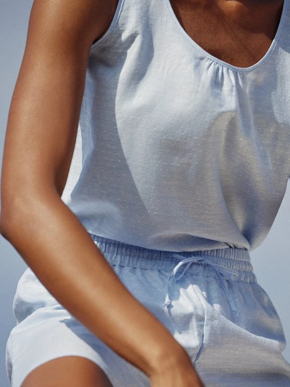 Für ein hohes Maß an Wohlbefinden in heißen Sommernächten sorgt der Kurz-Pyjama aus der LINEN NIGHTS Serie von CALIDA. Das Leinen-Baumwoll-Gemisch fühlt sich dank der temperaturregulierenden Eigenschaften der Leinenfasern extrem angenehm auf der Haut an. Die lockere Passform garantiert Bewegungsfreiheit und zusätzlichen Tragekomfort.