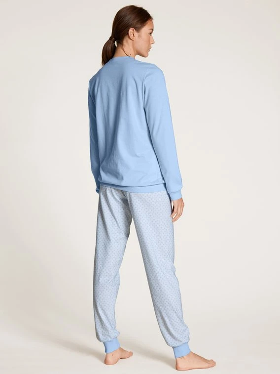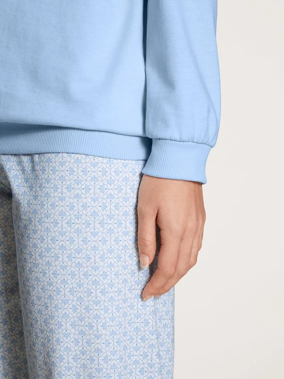 Der Pyjama aus der LOVELY NIGHTS Serie aus dem Qualitätshaus CALIDA besticht mit 100% weicher Baumwolle. Der Pyjama besteht aus einer gemusterten Hose und einem unifarbenen Shirt mit eingefassten Rundhalsausschnitt und punktet zusätzlich durch weiche Bündchen an allen Abschlüssen.