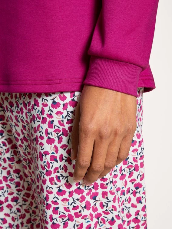Blumenprints auf Frühlingsmode? Kennen wir schon. Blumenprints auf Nachtwäsche für kalte Nächte? Immer her damit! Der MIDNIGHT DREAMS Bündchen-Pyjama von CALIDA setzt auf eine überbordende Blütenpracht und ein strahlendes Pink, das im Herbst und Winter fröhliche Akzente setzt. Den wärmenden Kuschel-Part übernimmt gebrushte Baumwolle in schwerer Qualität.