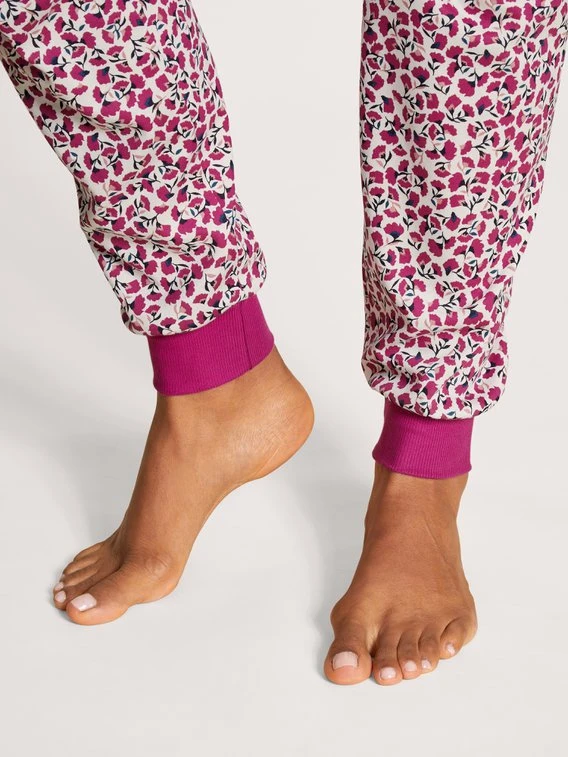 Ab jetzt geht es Fröstelattacken an den Kragen: Der MIDNIGHT DREAMS Bündchen-Pyjama von CALIDA lässt übliche Rundhals- und V-Ausschnitte hinter sich. Stattdessen setzt er auf ein warmes Stehkragen-Oberteil mit elastischen Bündchen. So hat nicht einmal der kleinste Luftzug eine Chance. Genauso wenig wie trübe Laune: Wer kann dem fröhlichen Pink-Mix aus Uni-Design und Millefleur-Print schon widerstehen?