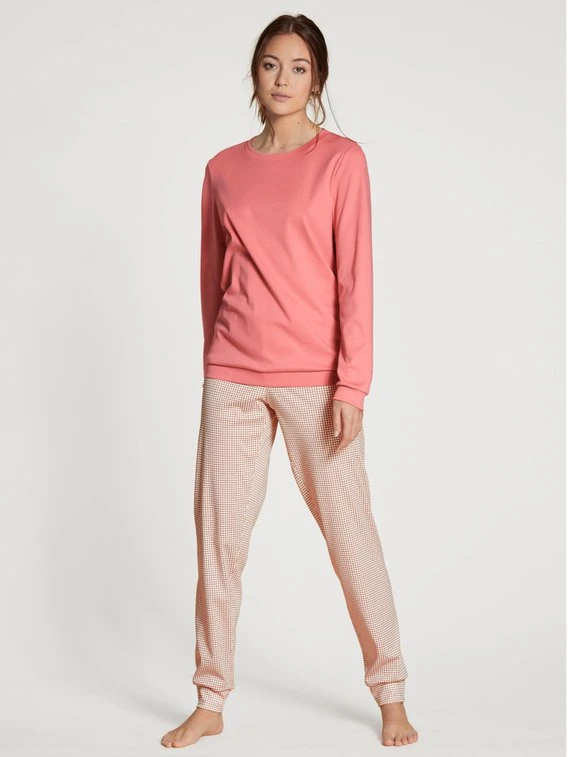 Natürlich haben sich die CALIDA Designer bei der Kombination des MIDSUMMER DREAMS Bündchen-Pyjamas etwas gedacht. Der frische Rosenton des sportlichen Bündchen-Pullovers harmoniert hervorragend mit dem zarten Karo-Print der lässig geschnittenen Bündchenhose. Doch dieser Mix ist keine Vorschrift – sondern eine Einladung, das hochwertige Baumwoll-Sleepwear-Duo nach Lust und Laune mit anderen CALIDA Essentials zu kombinieren.