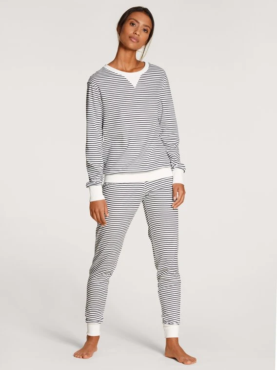 Achtung, Wortspiel: Mit diesem MIDSUMMER DREAMS Pyjama von CALIDA schließt jede Frau gern ein Bündchen fürs Leben. Doch Spaß beiseite, die langlebige und pflegeleichte Baumwolle hält wirklich unzählige Übergangsnächte durch. Zusätzlich können Sie sich über ein angenehmes Hautgefühl und zeitlose Maritim-Streifen freuen. Darin kuscheln Sie sich ein und bleiben trotzdem cool.