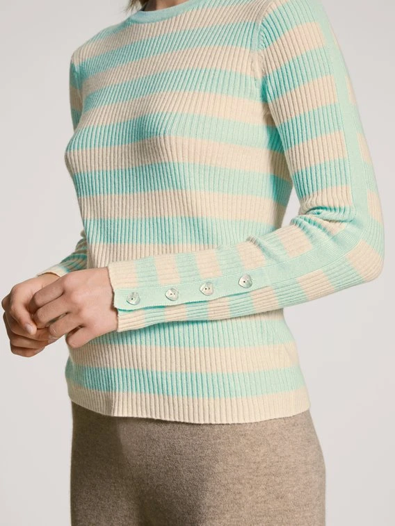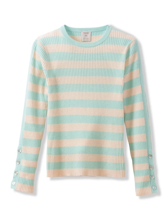 Als ein erfrischend farbiger Blickfang präsentiert sich dieser Pullover aus der „CALIDA x FTC Cashmere“-Kollektion im Streifen-Design. Als Brand im Premiumsegment achtet FTC vor allem auf Qualität, Nachhaltigkeit und Fairness. Die perfekten Werte, die CALIDA und FTC, ideal miteinander verbinden.