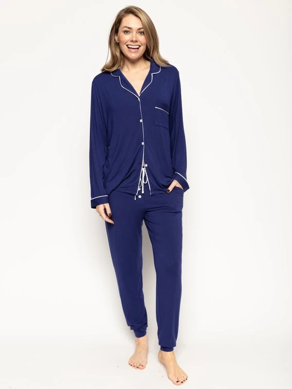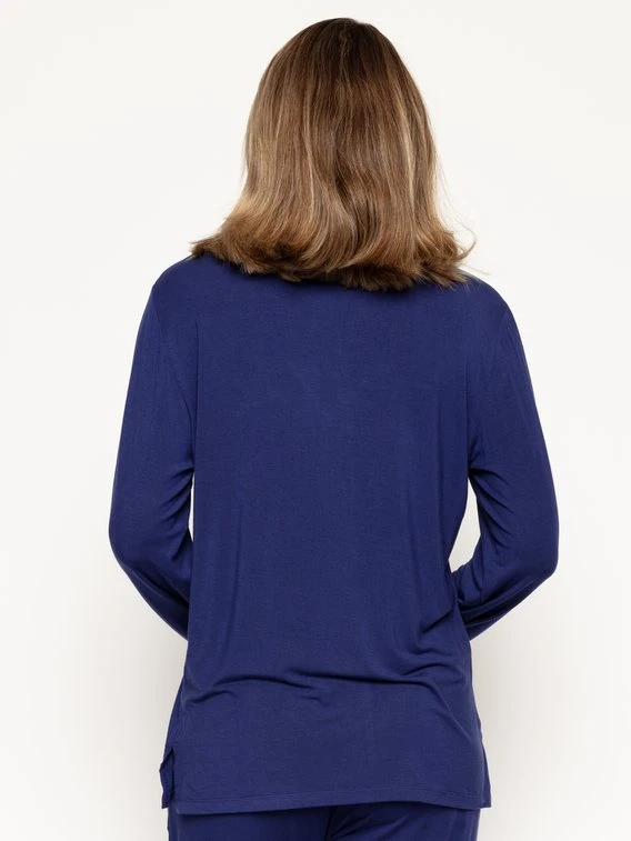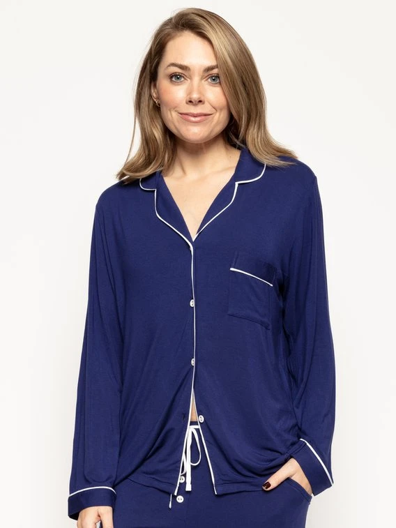 Hervorragenden Komfort und Eleganz vereint das Pyjama-Oberteil aus der Serie “Riley” von CYBERJAMMIES. Das Langarm-Shirt aus weichem Modal-Elasthan-Mix eignet sich perfekt zum Relaxen auf der Couch oder für angenehme Nächte. Feine Paspeln, die aufgesetzte Brusttasche und eine durchgehende Knopfleiste verleihen der Nachtwäsche das gewisse Etwas. Die passende Hose ist hier im Shop erhältlich.