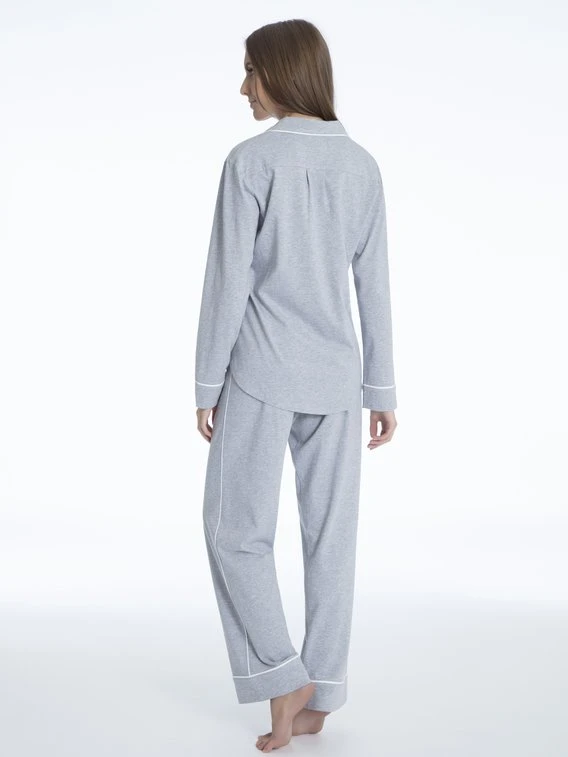 Der lange Pyjama von DKNY aus der Serie “New Signature” steht für ein angenehmes Tragegefühl. Die leichte Single Jersey-Qualität aus Baumwolle und Viskose legt sich sanft an Ihren Körper und lädt zum Relaxen und Entspannen ein. Der klassische Schnitt wird durch kontrastfarbene Nähte aufgelockert. Das Hemdoberteil verfügt über eine kleine Brusttasche und ist am Saum abgerundet. Die Hose kann mit einem Kordelzug praktisch geschnürt werden.