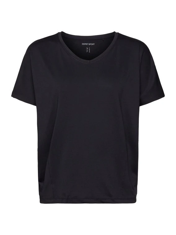 Klassisches Sport Shirt von ESPRIT aus der Serie “Casual”. Das Oberteil wurde aus recycelten Fasern hergestellt, ist beim Sport atmungsaktiv und trocknet schnell für den idealen Tragekomfort. Designt wurde das Shirt mit einem stylischen V-Ausschnitt und taillierter Passform.