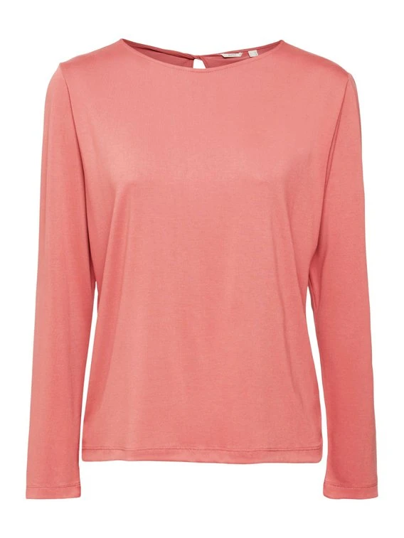 Lockere Passform und TENCEL™ machen dieses Langarm-Shirt von ESPRIT aus der “Casual” Serie zu einem tollen Alltagsbegleiter. Durch den hohen TENCEL™ Anteil liegt das Material angenehm und natürlich auf der Haut und sorgt für bestes Tragegefühl. Der klassische Schnitt mit eingefasstem Rundhalsausschnitt und abgerundetem Saum machen das Shirt zu einem perfekten Basic zum Kombinieren. Ein Twist-Detail am Rücken geben dem Langarmshirt das gewisse Extra.