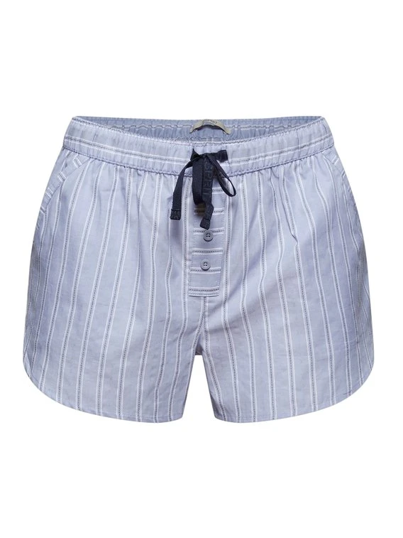 ESPRIT präsentiert die Shorts aus der „Dariah“ Nachtwäsche Kollektion im klassischen Streifenlook. Reine Baumwolle liegt wunderbar weich und leicht auf der Haut und sorgt für wahre Wohlfühlmomente und einen erholsamen Schlaf. Seitliche Eingrifftaschen, die Knopfleiste und der Tunnelzug runden das frische Design ab.