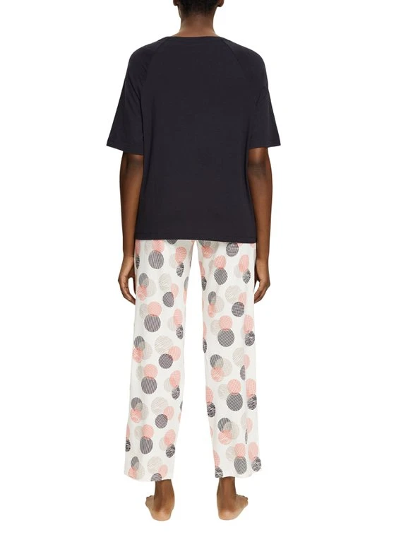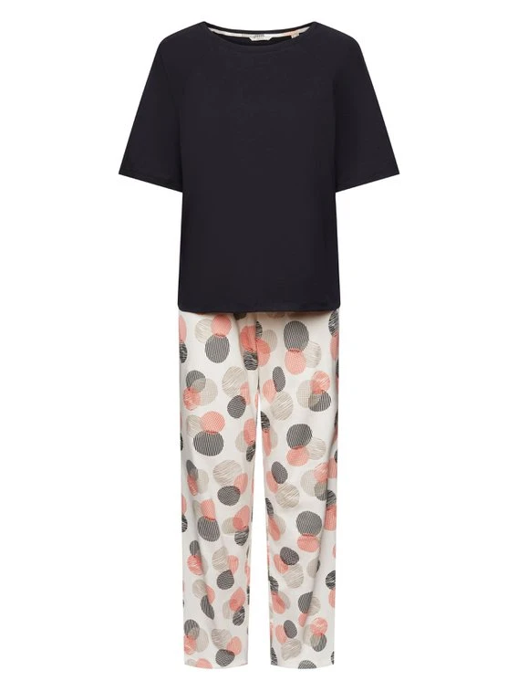 Pyjama mit Kurzarm-Shirt von ESPRIT aus der Kollektion “Seasonal Print”. Das Schlaf-Set eignet sich aufgrund seiner Zusammenstellung aus 7/8-Pants und Halbarm-Shirt ideal für den Übergang. Die lockere Passform sorgt für genug Bewegungsfreiheit in der Nacht.