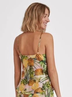Sommerlich leicht liegt das Kleid von EVA BITZER aus der Serie “Piu Bella Cosa” auf der Haut. Durch die glatte Satinbindung fließt das Material locker an der Silhouette entlang. Die klassische Tunika mit relaxter Passform, 3/4-Ärmel und einem Rundhalsausschnitt mit tiefen Schlitz ist der ideale Begleiter am Strand oder für einen Stadtbummel. Das Palmen-Muster ergänzt das sommerliche Feeling perfekt.