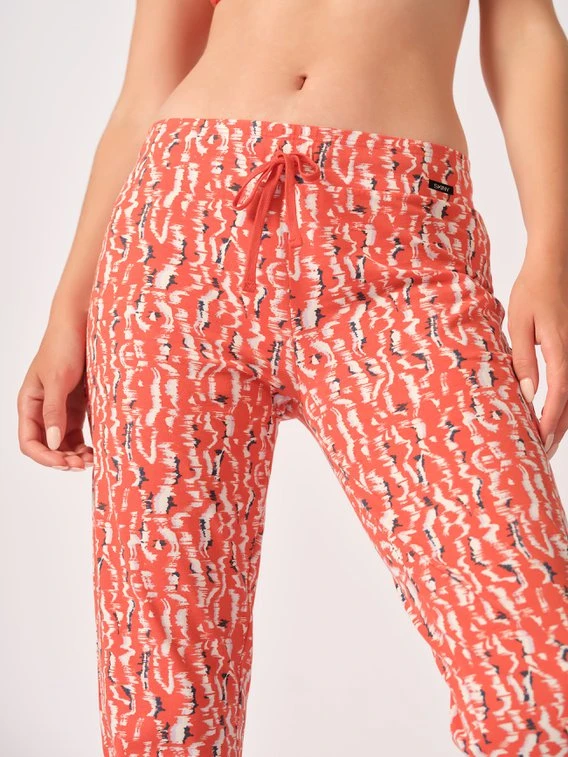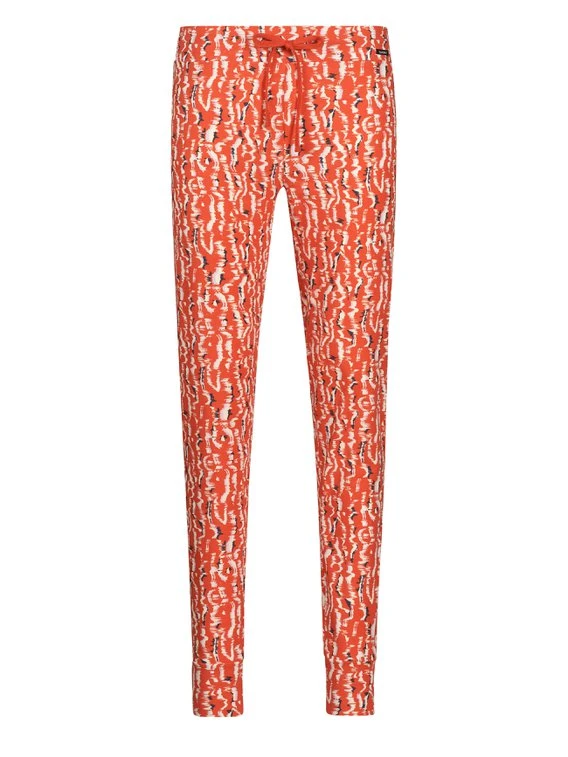 Die Bündchenhose von SKINY aus der Serie „Every Night In Mix & Match“ überzeugt mit ihrem floralen Muster in satten Farben. Die Blattranken kommen besonders auf dem dunklen Unterton gut zur Geltung. Die Hose wird nach unten schmaler und ist an den Beinabschlüssen mit elastischen Bündchen versehen. Auch der Bund ist elastisch eingefasst und besitzt einen Tunnelzug.