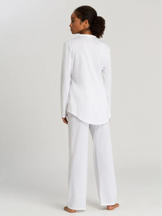 Der klassische Pyjama der Basic-Serie “Cotton Deluxe” von HANRO ist der perfekte Begleiter für traumhafte Nächte. Die leichte Pima-Baumwolle sorgt für ein angenehmes Tragegefühl die ganze Nacht und das dezente Oberhemd mit offenem V-Ausschnitt garantiert einen stilvollen Auftritt. Die lange Pyjamahose mit geradem Bein bietet viel Komfort und Bewegungsfreiheit für eine angenehme Nachtruhe.