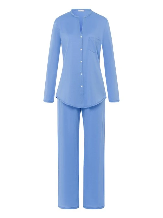 Der klassische Pyjama der Basic-Serie “Cotton Deluxe” von HANRO ist der perfekte Begleiter für traumhafte Nächte. Die leichte Pima-Baumwolle sorgt für ein angenehmes Tragegefühl die ganze Nacht und das dezente Oberhemd mit offenem V-Ausschnitt garantiert einen stilvollen Auftritt. Die lange Pyjamahose mit geradem Bein bietet viel Komfort und Bewegungsfreiheit für eine angenehme Nachtruhe.