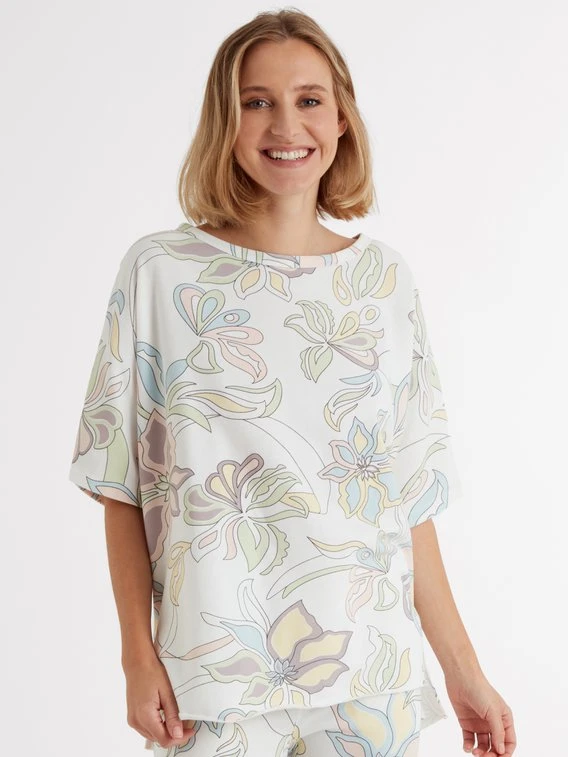Das Sweatshirt mit halben Arm von JUVIA aus der “Doris”-Kollektion überzeugt mit seinem floralen Design. Der lässige Schnitt in schönen Pastellfarben erzeugt einen echten Hingucker, der mit einer beliebigen Hose kombiniert werden kann. Das Fleece Material aus einer weichen Baumwollmischung liegt dabei angenehm auf der Haut.
