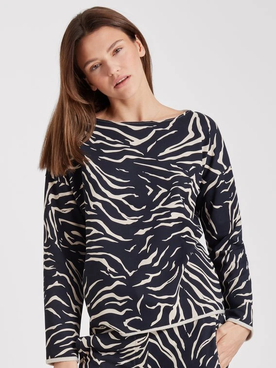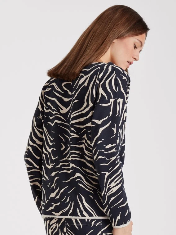 Der Sweater von JUVIA aus der “Judi” Kollektion ist aus einem Sweatmaterial mit weicher Fleece Innenseite gefertigt. Das Zebra-Print-Design nimmt einen aktuellen Trend und macht diesen alltagstauglich. Das lässig geschnittene Oberteil lässt sich beliebig kombinieren und ist dadurch ein It-Piece im Kleiderschrank!