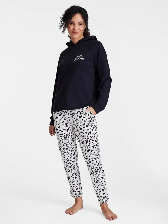 Die lange Hose von JUVIA aus der “Normandie” Serie kommt im angesagten Animal-Print. Das Fleece Material aus einer Baumwoll-Mischung liegt angenehm weich auf der Haut und schafft einen tollen Tragekomfort rund um die Uhr. Modische Details, wie zum Beispiel Schlitze am Beinabschluss und auch praktische, seitliche Eingrifftaschen machen den Look komplett.