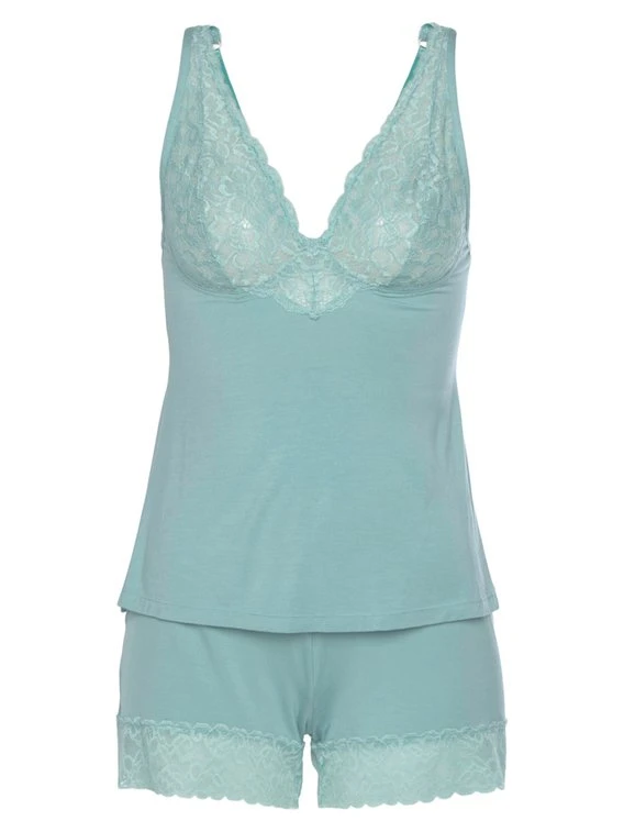 Feminines Schlaf-Set aus der Serie “Lace Dreams” von LASCANA. Der kurze Pyjama erscheint in schönen Pastellfarben und viel romantischer Spitze an Dekolleté und an den Beinabschlüssen. Der fließende Material-Mix sorgt für pures Wohlbefinden und ruhige Nächte. Ein elegant sitzender Schnitt der pure Freude macht.