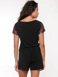 Edler Spitzen-Pyjama aus der Serie “Dusty Cedar” der Marke LINGADORE. Das süße Set besteht aus einem Oberteil mit Spitzenbesatz im Schulterbereich und langen Ärmeln. Dazu wird eine lange, fließende Hose mit elastischem Bund und Spitzeneinsätzen kombiniert.