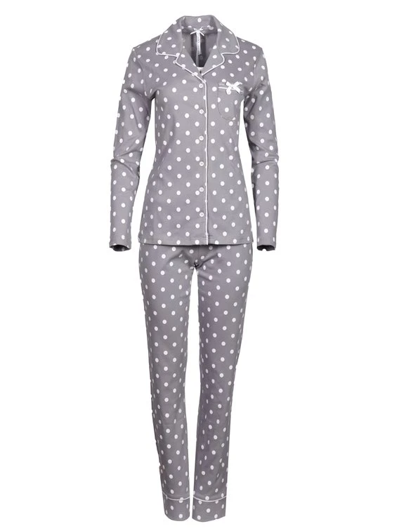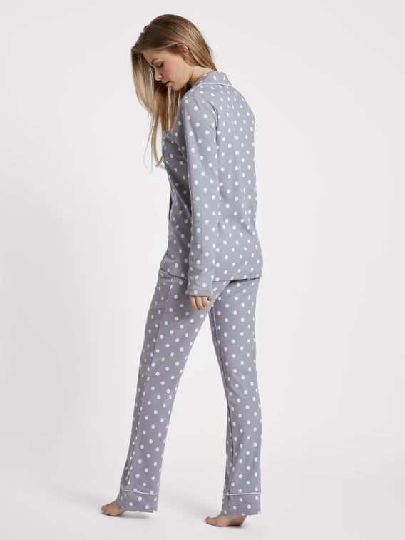 Der Pyjama aus der “Meine Wohlfühlzeit” Serie von LOUIS & LOUISA überzeugt im klassischen Design. Reine Baumwolle fühlt sich leicht und angenehm auf der Haut an und sorgt für Wohlfühlmomente. Das süße Satinschleifchen auf der aufgesetzten Brusttasche und die Paspelierung an Hemdkragen und Beinabschlüssen ergänzen den Allover-Pünktchen-Look perfekt.