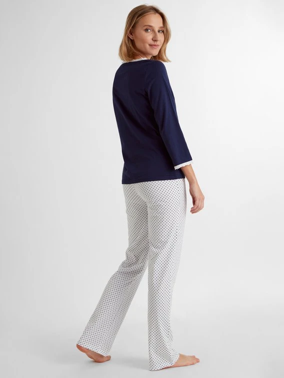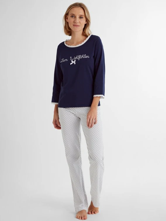 Der Basic Pyjama von LOUIS & LOUISA aus der Serie “Zum Wohlfühlen” lädt zum Entspannen ein. Aus 100% Baumwolle gefertigt liegt der Pyjama sanft auf der Haut. Das Basic Oberteil und die Hose im Pünktchenallover mit Bindeband ergeben einen Look zum Wohlfühlen.