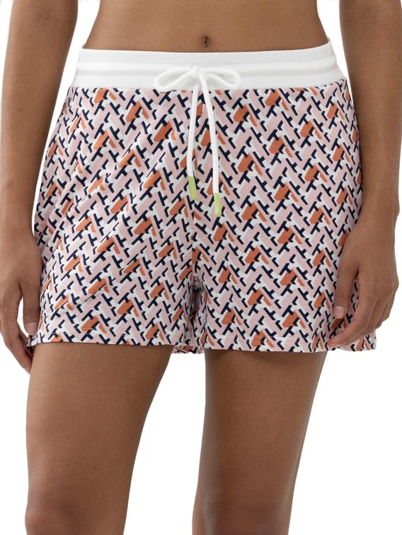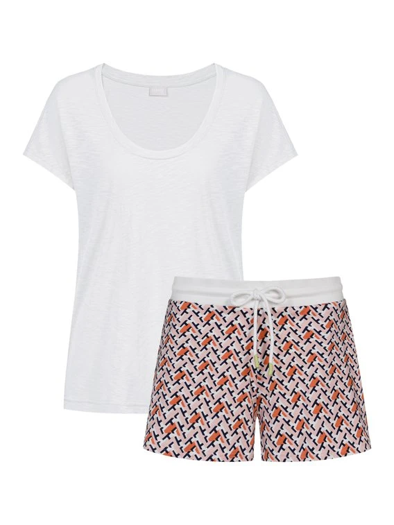 Der kurze Pyjama aus der “mynight2day”-Kollektion von MEY punktet mit einer legeren, bequemen Passform und einem modischen Look. Das Set aus locker geschnittenem T-Shirt mit Rundhalsausschnitt ergänzt eine Shorts mit abstrakten Muster und individuell verstellbarem Tunnelzugbund. Die reine Baumwolle des Oberteils und der Baumwoll-Modal-Mix der Hose tragen zu einem perfekten Wohlfühlgefühl bei.