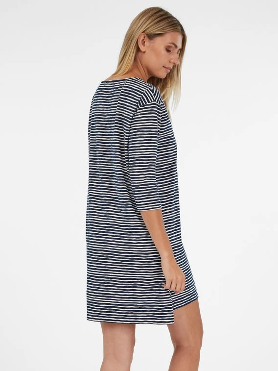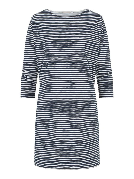 MEY präsentiert mit der Serie „Abbi“ aus der sportiven Night2Day-Kollektion eine neue Basic-Reihe, die mit einem maritimen Ringel-Design und hochwertigen, hautfreundlichen Materialien punktet. Das Bigshirt der Serie macht sowohl als Nachthemd als auch als bequemes Lounge- und Freizeitkleid eine gute Figur. Das Kleid mit ¾-Ärmel besteht aus einem elastischen Materialmix aus Baumwolle und Modal, der ein angenehm natürliches Tragegefühl vermittelt. Der gerade, figurumspielende Schnitt und der Saum mit Seitenschlitzen ermöglicht zudem einen bequemen Sitz und maximale Bewegungsfreiheit.