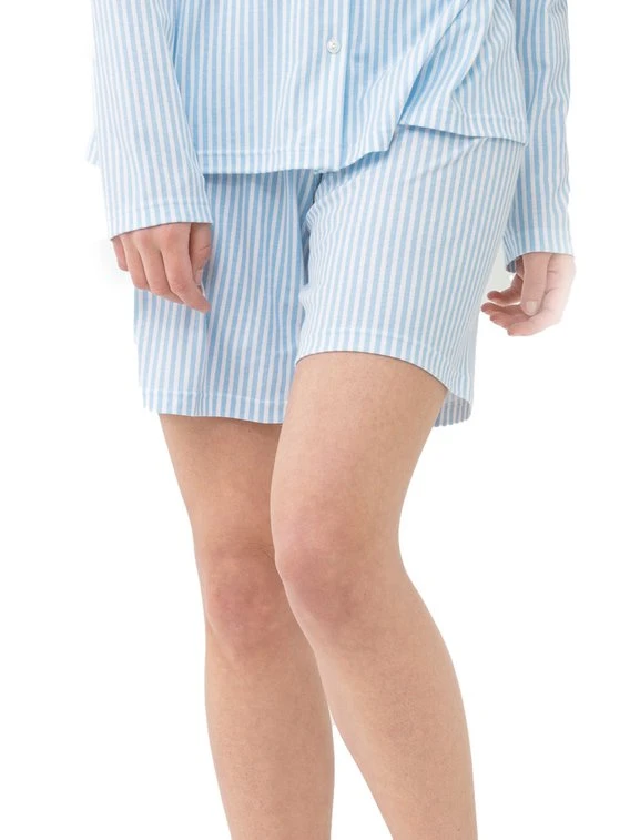 Mit der Serie „Sleepsation“ bringt MEY gemütliche Nachtwäsche im klassisch-zeitlosen Design auf den Markt, die aus reiner Bio-Baumwolle besteht und mit dem GOTS-Zertifikat sowie dem Grünen Knopf ausgezeichnet ist. Die Bermuda bietet dank ihrer legeren Passform und ihres flachen, elastischen Komfortbundes einen bequemen und bewegungsfreundlichen Sitz. Das pflegeleichte Baumwollgewebe der Schlafshorts vermittelt zudem ein natürliches, angenehm warmes Tragegefühl.