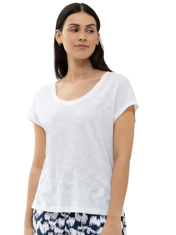 Das Kurzarm-Shirt der Serie „Soraya“ aus der aktuellen mynight2day-Kollektion von MEY präsentiert sich in einem zeitlosen, gemütlichen Design, das zum Wohlfühlen einlädt und viele Kombinationsmöglichkeiten bietet. Reine Baumwolle liegt angenehm auf der Haut und sorgt für ein natürliches Tragegefühl. In gewohnter Qualität von MEY ist dieses Oberteil ein toller Alltagsbegleiter.