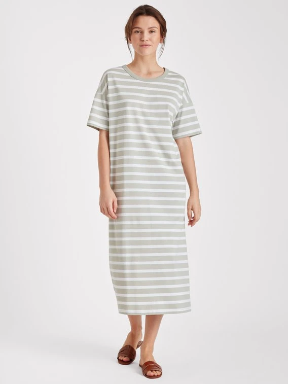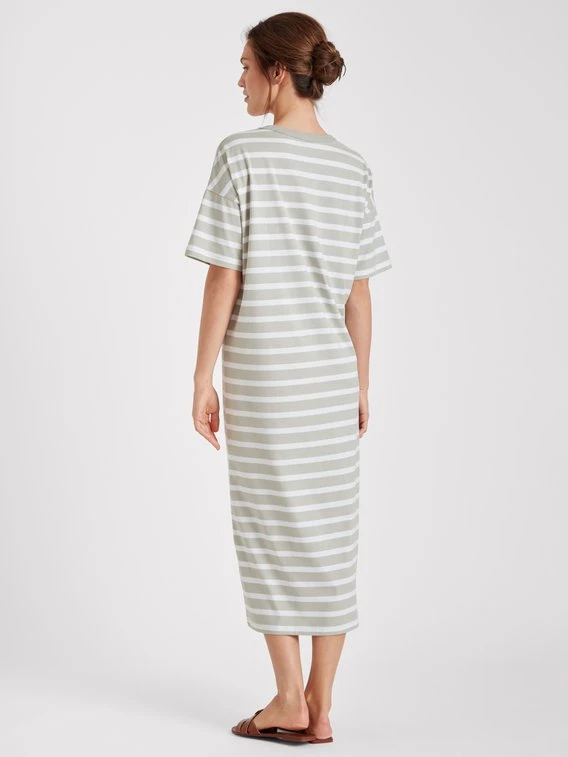 Eine entspannte Zeit Zuhause ist mit diesem Nachtkleid von NANSO aus der Kollektion “Maininki” garantiert. Die Single Jersey Verarbeitung aus hochwertiger, reiner Baumwolle ist herrlich angenehm und sorgt für ein softes Tragegefühl. Die überschnittenen Schultern und der figurumspielende Schnitt ermöglichen dabei einen idealen Sitz.