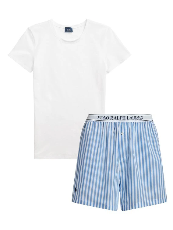 In dem kurzen Pyjama von POLO RALPH LAUREN aus der Serie “Shirting Stripes” ist Wohlfühlen angesagt. Das Set besteht aus hochwertigen Materialien und bietet ein natürliches Tragegefühl auf der Haut. Das unifarbene T-Shirt und die Shorts im Streifen-Design machen die Kombination zu einem sportiven, lässigen Klassiker.