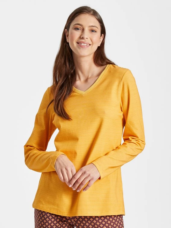 Das geringelte Langarm-Shirt aus der „B.l.o.o.my“ Serie von RINGELLA ist ein zeitloses, bequemes Damen-Oberteil, das sich hervorragend als Pyjama-Shirt oder als Teil eines gemütlichen Lounge-Sets eignet. Das Longsleeve besteht aus einem elastischen Baumwollgewebe, das ein natürliches Tragegefühl und viel Bewegungsfreiheit vermittelt.