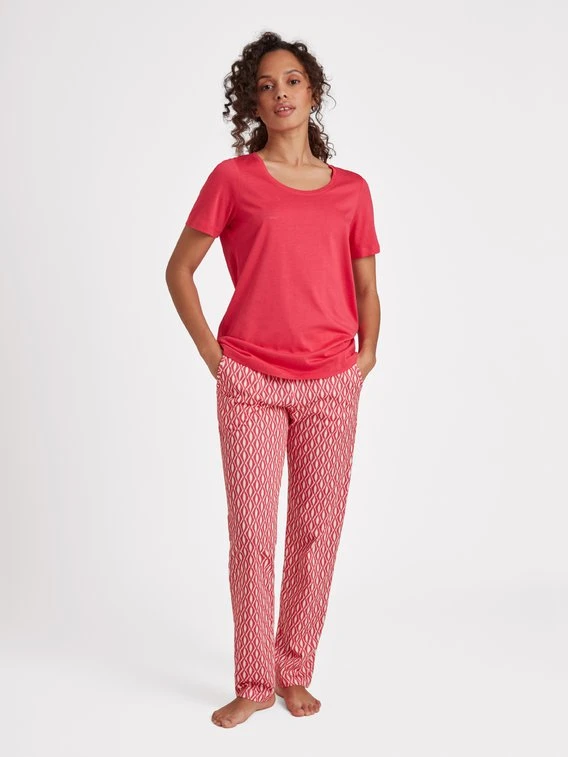 Der Pyjama aus der “B.l.o.o.my”-Kollektion von RINGELLA begeistert durch leichten Materialmix und tollem Tragekomfort. Gefertigt aus einem weichen Baumwoll-Modal-Mix liegt er nicht nur leicht auf der Haut, sondern sorgt auch für idealen Temperaturausgleich. Das Set besteht aus einer langen Hose und einem Kurzarm-Shirt.