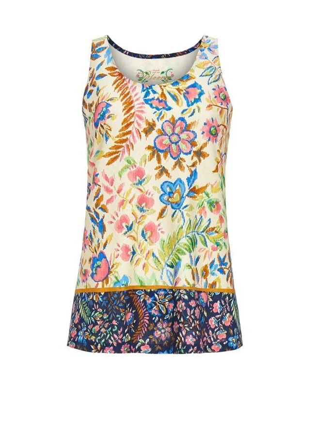 Mit einem blumigen Design stellt sich dieses wundervolle T-Shirt von RINGELLA aus der Serie “Bloomy” vor. Zum Hingucker wird der blumige Bordürendruck am Saum. Ohne Arm ist das Teil schön luftig und für heiße Sommertage ideal. Das trendige Modell aus hochwertiger Baumwolle und Modal fühlt sich weich auf der Haut an, ist pflegeleicht und atmungsaktiv.
