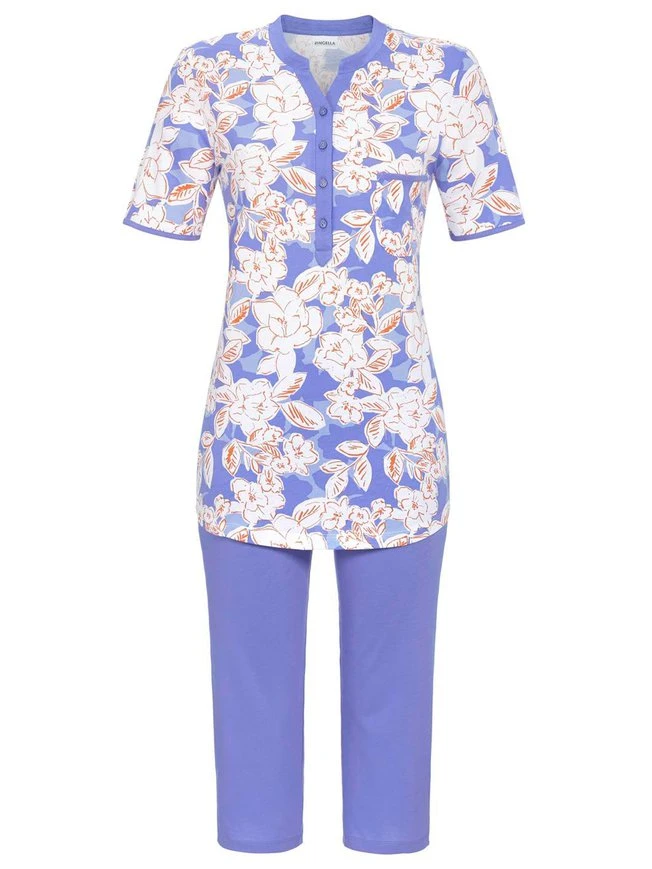 Der trendige Pyjama-Zweiteiler von RINGELLA der Serie “Women” punktet durch den lässigen Rundhalsausschnitt mit Knopfleiste. Zudem überzeugt er mit einem natürlichem Materialmix aus Baumwolle und Modal, der sich wunderbar weich auf der Haut anfühlen. Der eingefasste Ärmelsaum und die kleine Brusttasche machen das Kurzarm-Sleepshirt zum Hingucker. Eine unifarbene Caprihose mit Seitenschlitz am Hosenbein ist die perfekte Ergänzung zum Wohlfühlen.